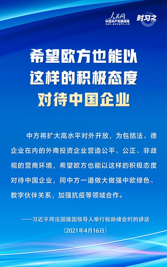 【編者按】4月16日下午,國家主席習近平在北京同法國總統馬克龍、德國總理默克爾舉行中法德領導人視頻峰會。三國領導人就合作應對氣候變化、中歐關系、抗疫合作以及重大國際和地區問題深入交換意見。人民網·中國共產黨新聞網“時習之”欄目摘錄了習近平在這次視頻峰會上的重要講話內容,一起學習。