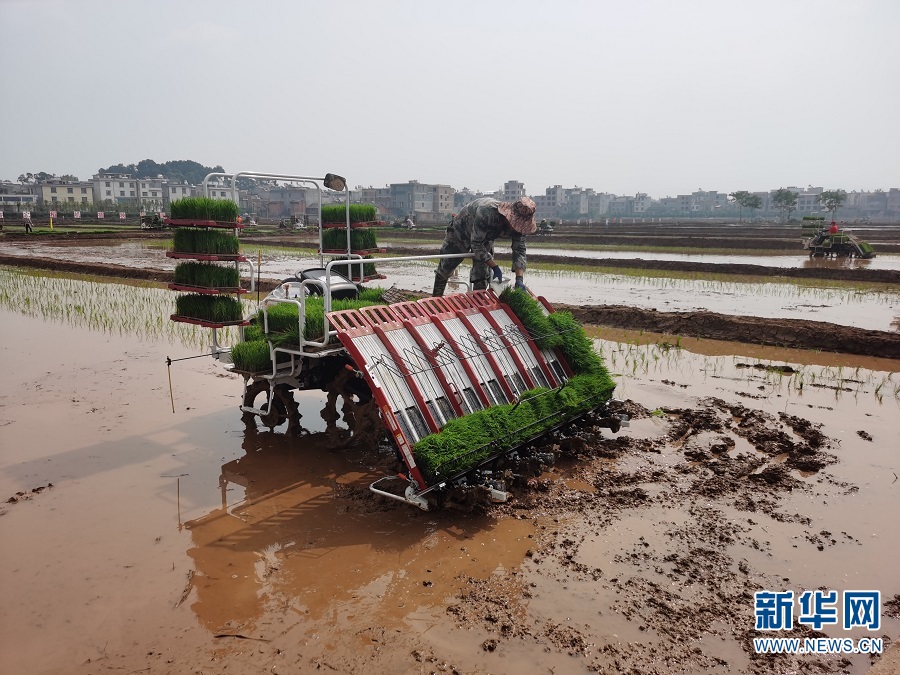 澄江市龍街街道萬海社區洋海村水稻種植機械化插秧。新華網發