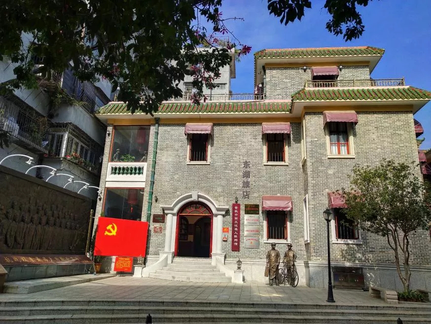 “東湖旅店”,位于惠州市區,這是一棟民國時期建的三層青磚樓房。抗日戰爭時期,這家旅店作為中共惠陽縣委設立的秘密交通站,見證了一場驚心動魄的大營救,100多位著名愛國民主人士和文化名人通過這里得以脫險。如今,這里被辟為“營救中國文化名人陳列館”,是粵港澳大灣區的一個愛國主義教育網紅基地。