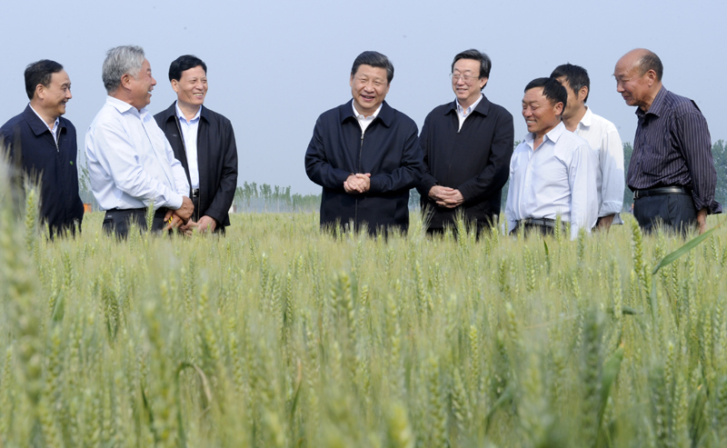 2014年5月9日至10日,中共中央總書記、國家主席、中央軍委主席習近平在河南省考察工作。這是5月9日下午,習近平在尉氏縣張市鎮高標準糧田察看小麥長勢。新華社記者 張 鐸 攝