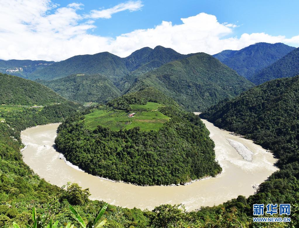 位于雅魯藏布江拐彎處的西藏墨脫縣果果塘茶場(2020年8月31日攝)。新華社記者 覺果 攝