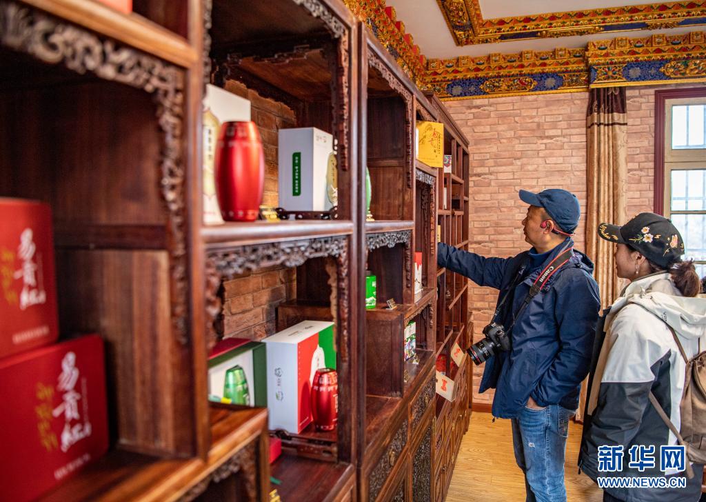 拉薩市北京路,崗堅茶葉股份有限公司門店內,一些造型獨特、包裝各異的茶葉產品吸引著顧客。