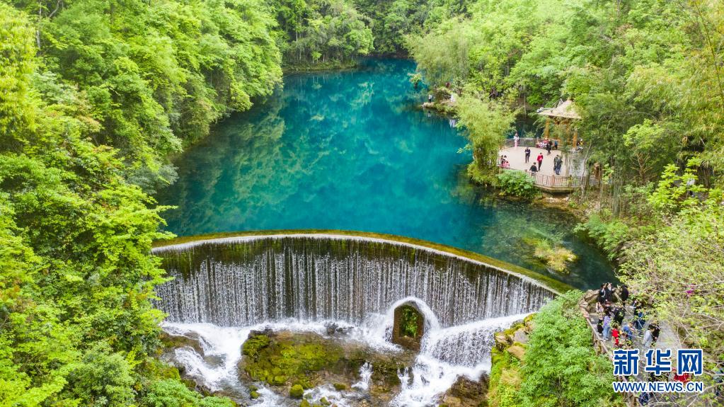 游客在荔波縣小七孔景區游玩(4月15日攝,無人機照片)。新華社記者 陶亮 攝