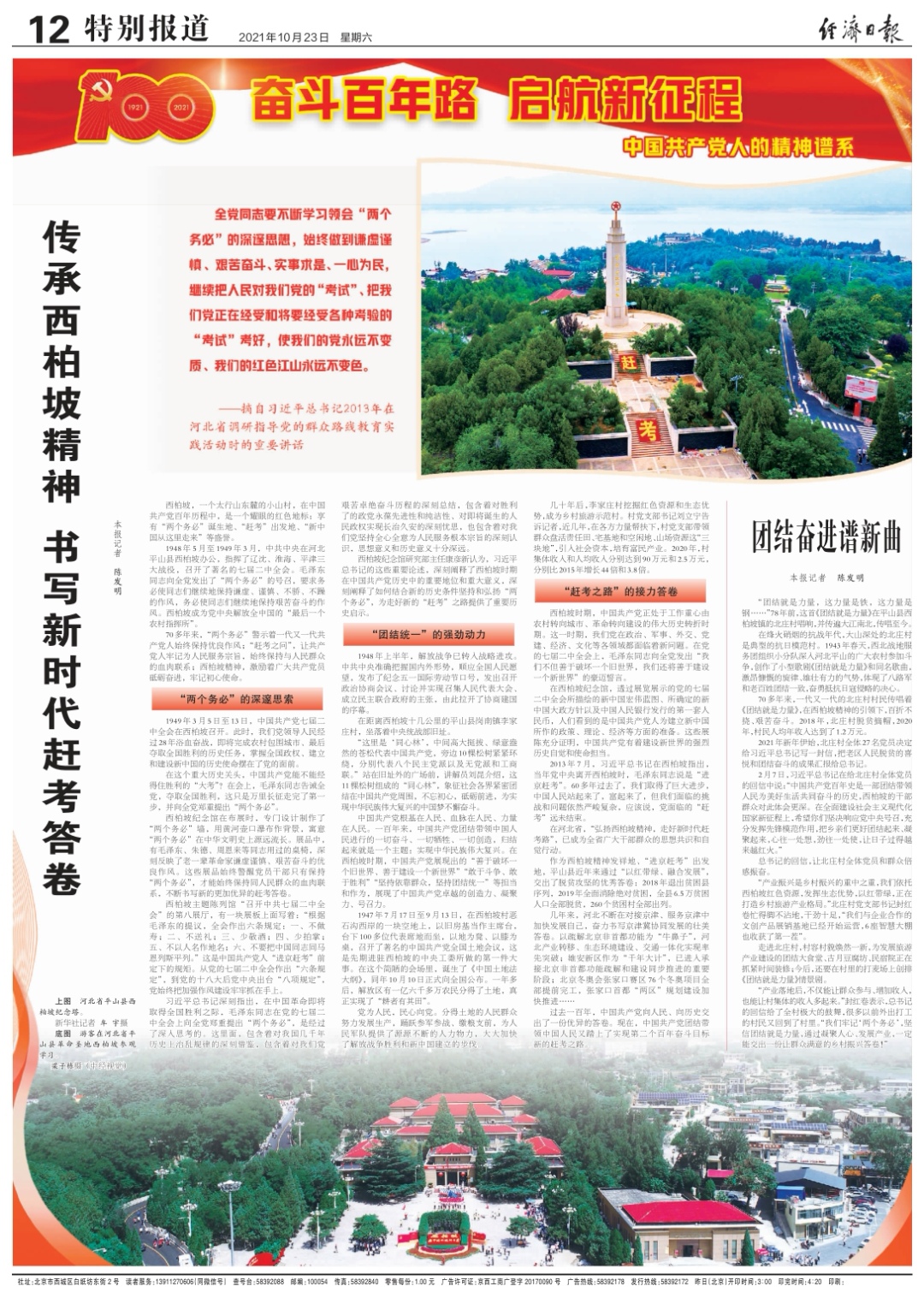 中國共產黨根基在人民、血脈在人民、力量在人民。一百年來,中國共產黨團結帶領中國人民進行的一切奮斗、一切犧牲、一切創造,歸結起來就是一個主題:實現中華民族偉大復興。在西柏坡時期,中國共產黨展現出的“善于破壞一個舊世界、善于建設一個新世界”“敢于斗爭、敢于勝利”“堅持依靠群眾,堅持團結統一”等擔當和作為,展現了中國共產黨卓越的創造力、凝聚力、號召力。