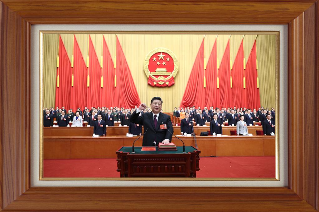 這一張工作照,是習(xí)近平連任國(guó)家主席后,向憲法宣誓。自發(fā)表2019年新年賀詞起,就一直擺在書架上。