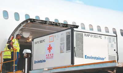 2021年12月20日,中國政府援助津巴布韋的新一批新冠疫苗運(yùn)抵首都哈拉雷。這是中方落實中非合作論壇第八屆部長級會議宣布的向非洲提供10億劑疫苗的舉措之一。津巴布韋2021年2月15日接收了中國援助的首批國藥集團(tuán)生產(chǎn)的新冠疫苗,此后又接收多批中國援助的國藥集團(tuán)新冠疫苗。津巴布韋副總統(tǒng)奇溫加表示,中方此舉鼓舞了津巴布韋戰(zhàn)勝新冠肺炎疫情的信心和決心。