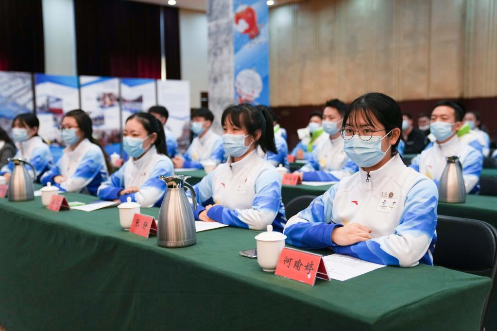 2021年12月31日,志愿者代表參加北京2022年冬奧會和冬殘奧會誓師動員大會。新華社記者 鞠煥宗 攝