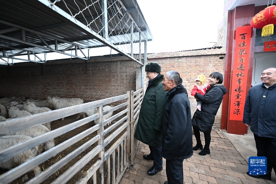 1月26日至27日,中共中央總書記、國家主席、中央軍委主席習近平來到山西,看望慰問基層干部群眾。這是26日下午,習近平在臨汾市汾西縣僧念鎮段村蔡文明家察看羊圈。新華社記者 李學仁 攝