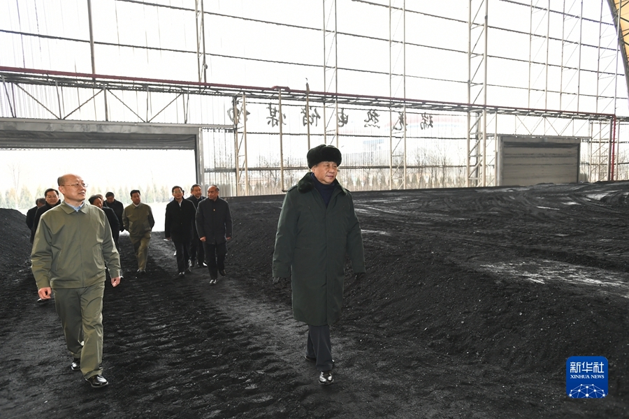 1月26日至27日,中共中央總書記、國家主席、中央軍委主席習近平來到山西,看望慰問基層干部群眾。這是27日下午,習近平在山西瑞光熱電有限責任公司儲煤場察看煤場儲煤情況。新華社記者 謝環馳 攝