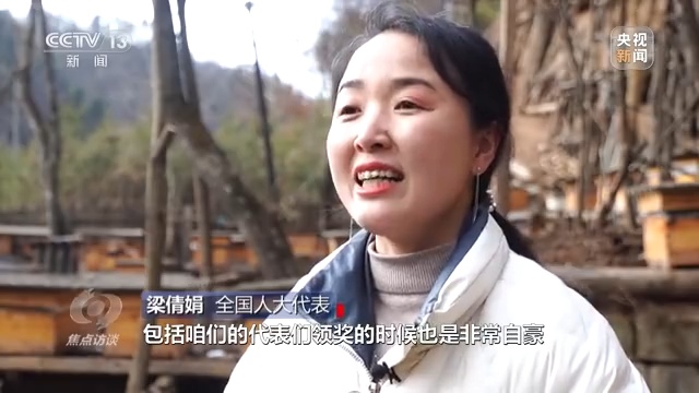 全國人大代表 梁倩娟:當時是在收山貨的路上,我看到了總書記講完話,包括給代表們頒獎的時候也是非常自豪。