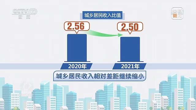 農村居民收入增長快于城鎮居民。城鄉居民收入比值由上年的 2.56 縮小至 2.50,城鄉居民收入相對差距繼續縮小。