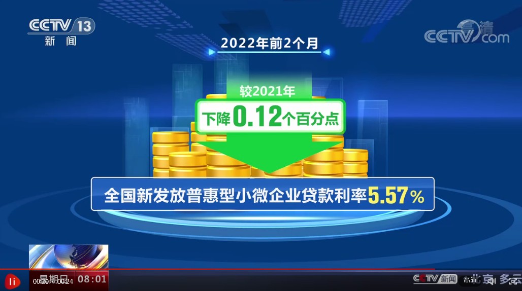 央視網消息:銀保監會數據顯示,截至2月末,全國普惠型小微企業貸款余額19.67萬億元,同比增速達到22.16%,較各項貸款增速高11.15個百分點。今年前兩個月,全國新發放普惠型小微企業貸款利率5.57%,較2021年下降0.12個百分點。