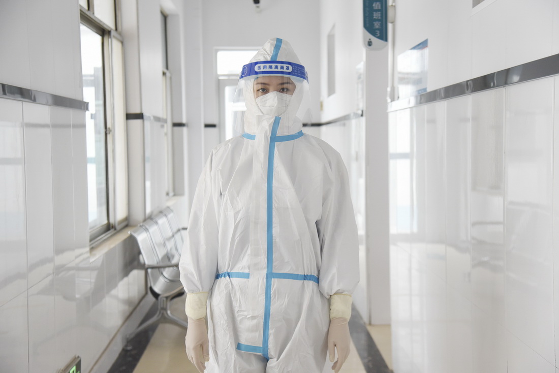 3月29日,在山東省濱州市惠民縣胡集鎮(zhèn)陳集衛(wèi)生院,朱夢瑤穿好隔離服準(zhǔn)備出發(fā)。新華社發(fā)(王軍攝)