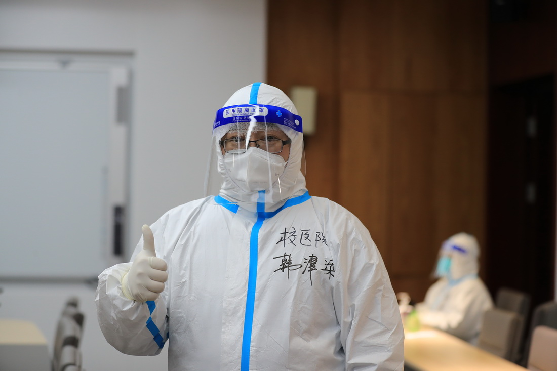 40歲的韓津梁,是吉林大學(xué)校醫(yī)院放射線科醫(yī)生。長春遭遇本輪疫情以來,他已連續(xù)兩周堅(jiān)守在校內(nèi)核酸檢測崗位,為疫情防控貢獻(xiàn)一份心力。