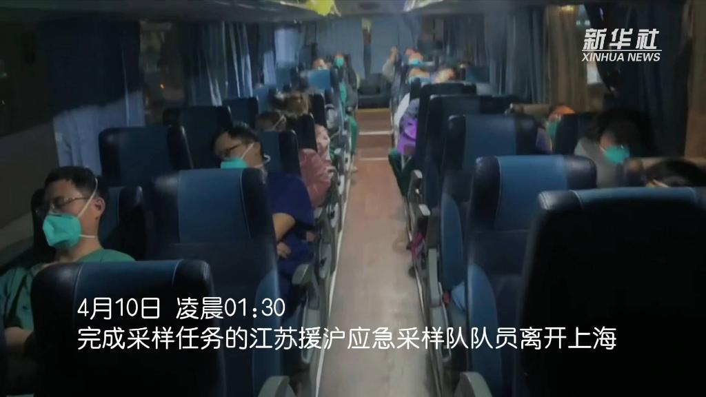 4月10日凌晨1時30分,完成核酸采樣任務的江蘇援滬應急采樣隊隊員離開上海,返回江蘇。在返程的車上,他們倒頭就睡。