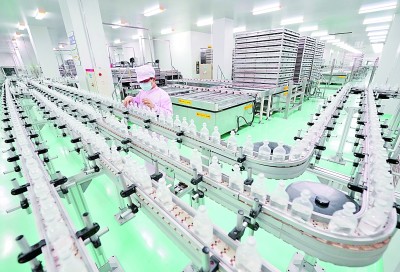 河北石家莊一家制藥有限公司的工人在醫藥生產車間工作。新華社發