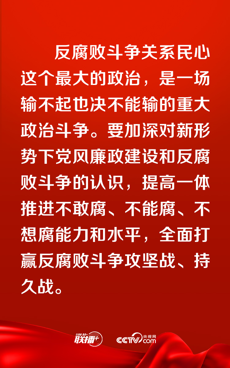 ▲要加強黨中央對反腐敗工作的集中統(tǒng)一領(lǐng)導(dǎo),發(fā)揮黨的政治優(yōu)勢、組織優(yōu)勢、制度優(yōu)勢,壓實各級黨委(黨組)全面從嚴(yán)治黨主體責(zé)任特別是“一把手”第一責(zé)任人責(zé)任,貫通落實相關(guān)職能部門監(jiān)管職責(zé),健全各負(fù)其責(zé)、統(tǒng)一協(xié)調(diào)的管黨治黨責(zé)任格局。