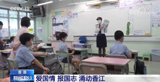 如今,全港中小學每周都會舉行升旗儀式,在每個上課日以及國慶日、香港回歸紀念日等重要日子都會升掛國旗,國家觀念筑牢在青少年心中。在香港培僑中學初二年級的中國歷史課堂上,老師正帶領同學們討論著中國如何從鴉片戰爭后積貧積弱走向如今的民族復興。