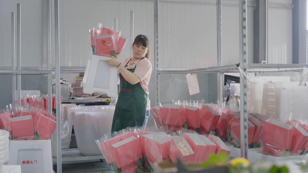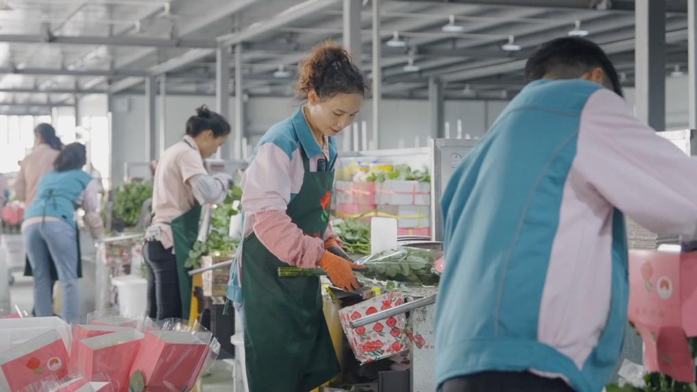 在晉寧昆陽張良花卉專業合作社的包裝車間內,工人們忙著分揀、包裝和打包,現場一派繁忙。云南晉寧昆陽張良花卉專業合作社負責人張良表示,最近白色、紅色和粉色的玫瑰鮮切花特別受歡迎,每天出貨量20多萬枝。“我們的花主要發往上海、重慶、廣州等城市。目前整個銷售量情況比較良好,訂單還在持續增長。”