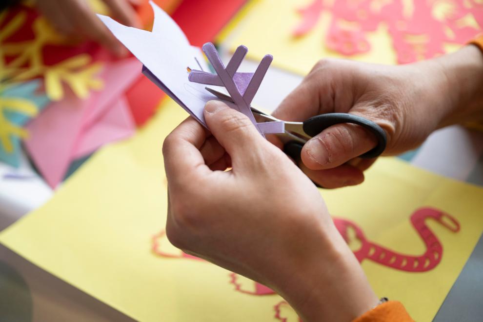 11月26日,游客在Y783次“悠享龍江·銀旅號(hào)”旅游列車上體驗(yàn)剪紙。新華社記者 張濤 攝