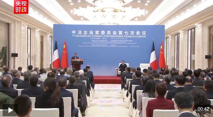 12月4日中午,國(guó)家主席習(xí)近平在北京同法國(guó)總統(tǒng)馬克龍共同出席中法企業(yè)家委員會(huì)第七次會(huì)議閉幕式并致辭。
