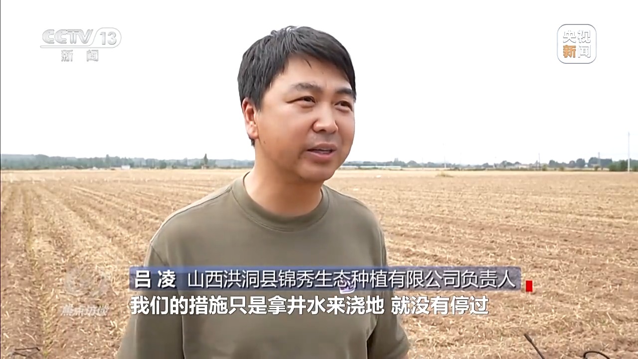 山西洪洞縣錦秀生態種植有限公司負責人 呂凌:墑情差到向土里挖四五十厘米都不見墑。很著急,老天不下雨,我們不停地拿井水來澆地,也緩解不了旱情。