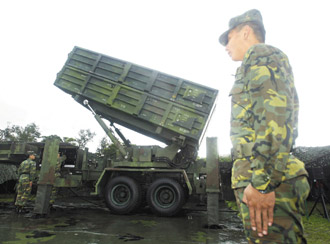 臺(tái)軍開放媒體參訪天弓導(dǎo)彈連,并現(xiàn)場(chǎng)操作發(fā)射程序。