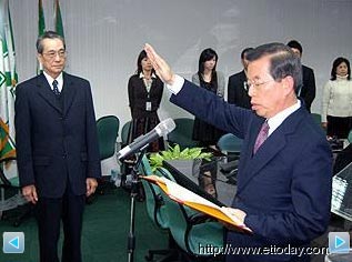 民進(jìn)黨代理主席謝長(zhǎng)廷16日正式宣誓就任,并首次主持民進(jìn)黨中常會(huì)。臺(tái)灣東森新聞?dòng)浾咧旒覐⿺z