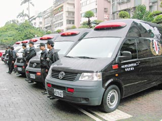 報道說,今天展示的防爆安全器材主角是6輛新購置的加大型防爆車,每輛斥資200萬元新臺幣,車身高度達190厘米,各式防爆器材可定位安置于車內。防爆人員同時可在防爆車上先行著裝,大大節省防爆人員抵達現場的時間。