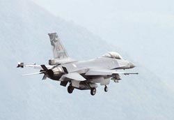 臺空軍401聯隊編號6706的F-16戰機,4日晚從花蓮基地起飛,30分鐘后在花蓮東南外海42浬失去聯第。臺軍方展開72小時海、空搜救行動,圖為失事前該戰機資料圖片。(臺灣《中國時報》圖片)