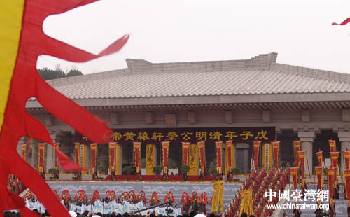 中國臺灣網4月4日黃陵消息 清明時節,萬物復蘇,巍巍橋山,泱泱沮水,陜西黃陵橋山軒轅殿前廣場莊嚴肅穆,今天,來自海內外的八千多名中華兒女聚集在黃帝陵前,共同祭拜中華民族的“人文始祖”軒轅黃帝,緬懷我們共同先祖。