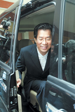 民進黨秘書長李應元11日參加該黨“立法院”黨團大會,會后低調的搭車離去。(臺灣《中國時報》圖片)