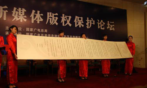與會(huì)的百余家行業(yè)單位在論壇上共同簽署了《奧運(yùn)新媒體版權(quán)保護(hù)北京宣言》,鄭重向社會(huì)作出承諾:以新媒體轉(zhuǎn)播本屆奧運(yùn)賽事,需提前以合法途徑獲得相關(guān)授權(quán)和許可;自覺(jué)抵制侵權(quán)盜版行為,采取切實(shí)有效的措施加強(qiáng)奧運(yùn)新媒體版權(quán)保護(hù);遵守國(guó)家有關(guān)法律法規(guī),認(rèn)真貫徹落實(shí)奧林匹克知識(shí)產(chǎn)權(quán)保護(hù)規(guī)定,切實(shí)執(zhí)行《互聯(lián)網(wǎng)視聽(tīng)節(jié)目服務(wù)管理規(guī)定》;高度尊重北京2008年奧運(yùn)會(huì)權(quán)利人以及持權(quán)轉(zhuǎn)播商機(jī)構(gòu)的權(quán)益,共同探索業(yè)務(wù)合作模式,在合法授權(quán)范圍內(nèi)傳播奧運(yùn)賽事;共同把奧運(yùn)版權(quán)保護(hù)作為奧運(yùn)會(huì)傳播業(yè)務(wù)的重要組成部分;自覺(jué)接受政府主管部門對(duì)奧運(yùn)新媒體版權(quán)保護(hù)的監(jiān)管,積極支持有關(guān)機(jī)構(gòu)開(kāi)展的打擊侵權(quán)盜版行動(dòng);遵守本宣言的各項(xiàng)約定,接受社會(huì)各界監(jiān)督。”
