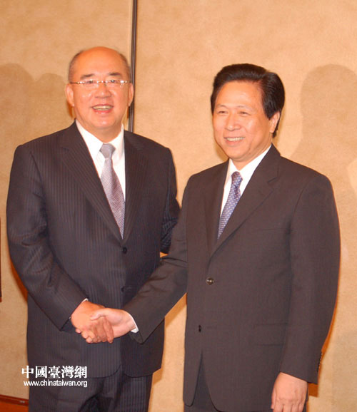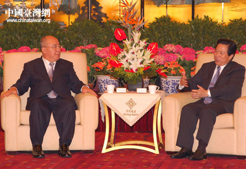 5月26日,中共江蘇省委書記梁保華在南京會見中國國民黨主席吳伯雄。 中國臺灣網記者田云鵬攝