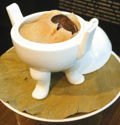 臺北“故宮晶華”餐廳筵席中的弦紋鼎,就是一道魚翅料理,島內外動物保護團體指責“故宮”把魚翅料理當寶,破壞動物保護形象。臺灣《聯(lián)合報》資料照片