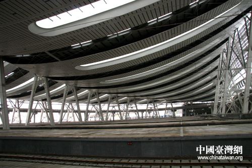 北京南站酷似飄帶的穹頂借鑒了中國傳統建筑的設計風格 攝影:李徽