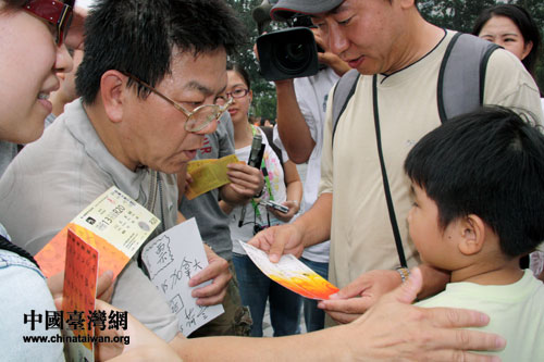 中國臺灣網8月13日北京消息 “票沒有白換啊,5:0大勝荷蘭!”在五棵松棒球場出口處,記者再次見到臺灣來的陳裕輝先生。而2個多小時前,他還在焦急地為能夠進入到中華臺北棒球隊比賽場地而舉著牌子四處找人換票。