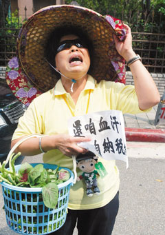 隨后,臺灣“愛國同心會”的宣傳車也定時、定點在陳水扁家樓下繞行。一名成員一手搖鈴鐺,一手抱著報紙卷成的棺材模型,大喊“阿扁死了,阿扁有理、貪污無罪”,諷刺陳水扁涉嫌貪瀆。