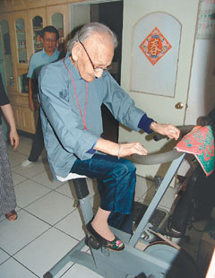 愛運(yùn)動(dòng)的吳蔣鳳妹昨天還現(xiàn)場坐在健身器上踩了起來,相當(dāng)熟練,臉不紅、氣不喘,讓張通榮等人嘖嘖稱奇,都說百歲還能這樣運(yùn)動(dòng),真不簡單。(趙靜)