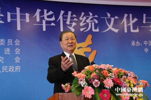 饒穎奇在第六屆海峽兩岸中華傳統(tǒng)文化與現(xiàn)代化研討會(huì)上暢談北京奧運(yùn)與兩岸“兩會(huì)”臺(tái)北商談(鐘寶華 攝)