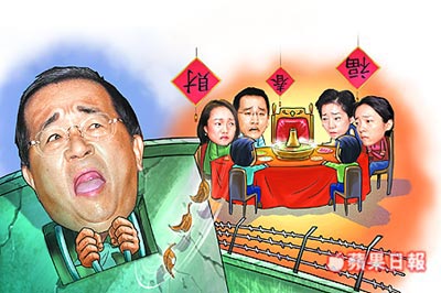 漫畫:陳水扁確定將在看守所過春節(jié),陳水扁一家難團(tuán)圓。來源:臺灣《蘋果日報(bào)》