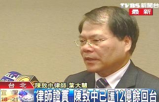 律師稱陳致中已發(fā)文給海外銀行,要求將12億元匯回臺灣 。來源:臺灣TVBS電視臺