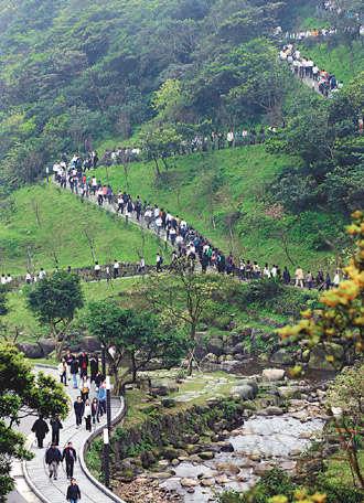 中國(guó)臺(tái)灣網(wǎng)2月16日消息 碧綠草地上,青翠竹林彷佛滴得出水;奇石水瀑旁,人龍靜靜蜿蜒,宛如油畫。3日?qǐng)A寂的臺(tái)灣法鼓山創(chuàng)辦人圣嚴(yán)法師骨灰昨天植存于金山環(huán)保生命園區(qū),逾3萬(wàn)名信眾繞著之字形山路前行,形成巨大壯觀的圖案,5小時(shí)后才緩緩散開(kāi)。