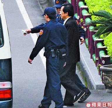 臺北地方法院昨?qū)徖黻愃馑姘讣嵊嵙b押在臺北看守所的陳水扁。來源:臺灣《蘋果日報》