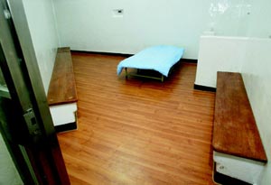 臺北地方法院行政庭長黃俊明表示,整修后的候審室提供置物柜,保管被告私人物品,保護室加裝皮革敷泡棉,以保護情緒失控的被告安全。