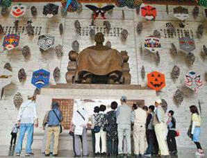 陳水扁在位時推行“去蔣”政策,蔣介石銅像被各式風箏遮擋。資料圖片