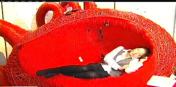 報道稱,這款大紅色沙發鮮艷搶眼,仿照心臟外型設計,周圍布滿密密麻麻的“血管”,有一個人身高的寬度,左躺、右躺、側躺、或坐著休息、任意翻滾,都不受干擾。一位學生談到,“感覺很舒服而且很自在,有種安全感,一整天都想要在里面,陷進去了!