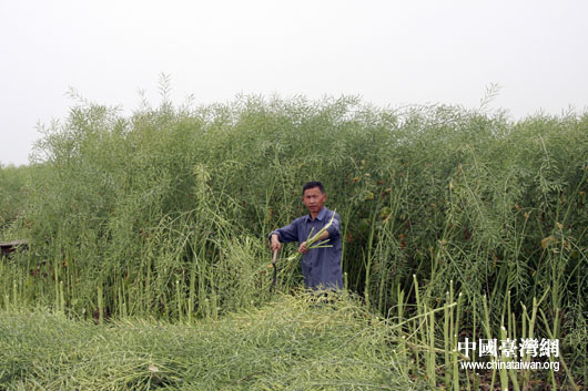 北川新城新址上,搬遷村民鄧大叔正在收割自家田里最后一茬莊家,未來這里將拔地而起一座嶄新的北川城。(中國(guó)臺(tái)灣網(wǎng) 鐘寶華 攝)