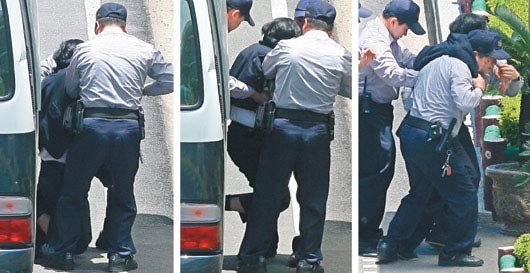 陳水扁昨天中午還押臺北看守所,雖然法官還未裁定是否延押,但被關了4個多月的陳水扁步下警備車時腿軟差點跌倒,在3名法警的攙扶下,進入戒護中心。來源:臺灣《聯合報》