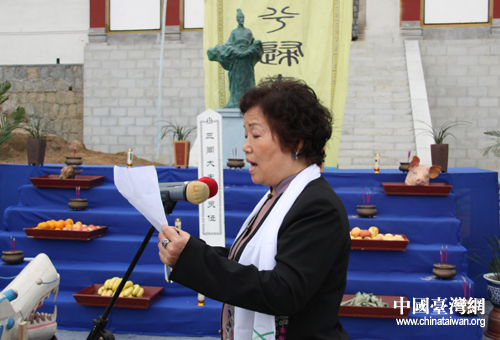 臺灣嘉賓代表在典禮上誦念祭文(中國臺灣網(wǎng) 焦瑩瑩 攝)